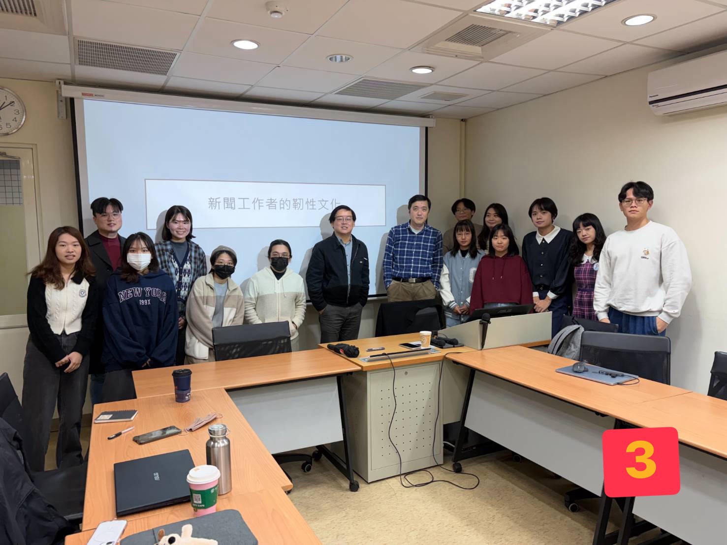 在碩博士班「文化社會學:傳播經典及新興議題」課程中,李教授則以「新聞工作者的韌性文化」為題,探討在民主倒退與
